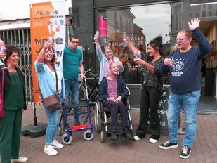 · De kunstwerken hangen in atelier Benjamin Scheltema en zijn gemaakt door mensen met een verstandelijke beperking. De opening is feestelijk gevierd.