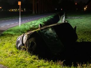 · In een S-bocht raakte het voertuig van de weg, en kwam het aan de andere kant van de weg tot stilstand in een sloot.