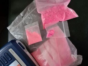· Politieagenten vonden onder andere honderden grammen ketamine, tien milliliter GHB en bijna tweehonderd gram pink cocaïne.