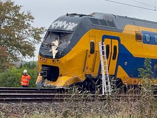 · Er reden sinds afgelopen maandag geen treinen tussen de twee plaatsen, doordat een trein een bus op een spoorwegovergang doormidden reed.