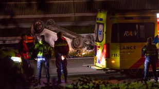 · Een auto kwam op z'n kop in de middenberm terecht. De bestuurder is met spoed naar het ziekenhuis gebracht.