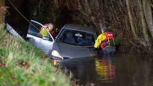 · Voorbijgangers hadden in een sloot langs de Krommeweg een auto gevonden, en het was niet duidelijk of er nog iemand in het voertuig zat.