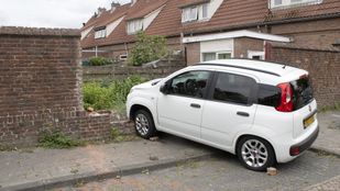 · De bestuurder van de witte Fiat Panda had door onbekende oorzaak een tuinmuur in Steenbergen omver gereden.