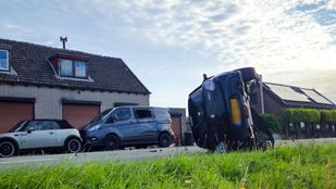 · Door de klap raakte de auto zwaar beschadigd en belandde deze op de zijkant.