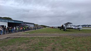· Tijdens de herdenkingsvlucht vlogen verschillende oude vliegtuigen een ronde boven West-Brabant. Langs de baan was het druk met bezoekers.