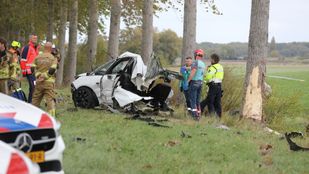 · De brandweer moest de persoon uit de auto halen. Door de klap raakte de auto flink beschadigd en lagen stukken tientallen meters verderop.
