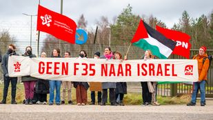 · Met protestborden, Palestijnse vlaggen en spandoeken vroegen de demonstranten aandacht voor de situatie in de Gazastrook.