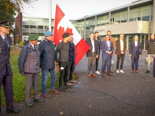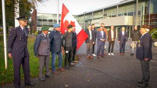 · Vandaag werd de bevrijding uit de oorlog herdacht en werd er voor het gemeentehuis een Canadese vlag gehesen.