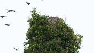 · Maandag verscheen er een grote kraan op het terrein van de voormalig melkfabriek. Even leek het dus alsof de complete schoorsteen tegen de vlakte zou gaan.