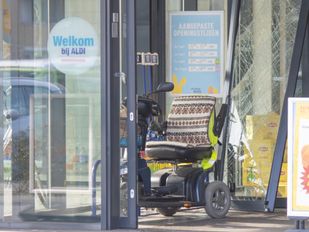 · Het ongeluk vond plaats aan het eind van de middag, bij de Aldi aan de Haviksberg. De scootmobiel is dwars door een glazen schuifdeur gereden.