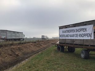 · Met het spandoek neemt Niels het op voor zijn collega-winkeliers en mensen met een horecazaak. "Ik laat hem zeker tot vrijdag hangen."