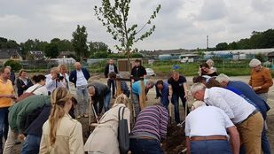 · Wethouder Hans de Waal van de gemeente Woensdrecht, Wim van de Kerkhof van Ruimte voor Ruimte en enkele toekomstige bewoners…