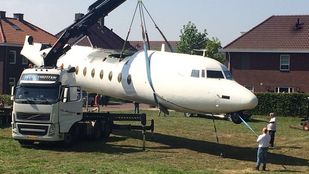 · Het Fokker F27 vliegtuig dat bij de bed & breakfast komt aan de Nijverheidsstraat in Hoogerheide is woensdag onder veel…