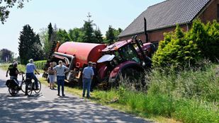 · Door de zware mestkar die achter de trekker hing verloor de bestuurder de macht over het stuur. Hij is door de klap uit het raam aan de achterzijde van de trekker gelanceerd.